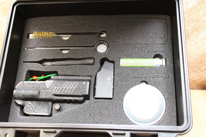 Niveau équipements, il est livré dans une mallette rigide sur deux niveaux avec différents accessoires (Chargeurs, dos de poignées différentes tailles, kit de nettoyage, holster, platines point rouge, puits de chargeur, outils de démontage, 1 ressort de rappel de culasse pour des munitions rechargées ou sous-chargées....)