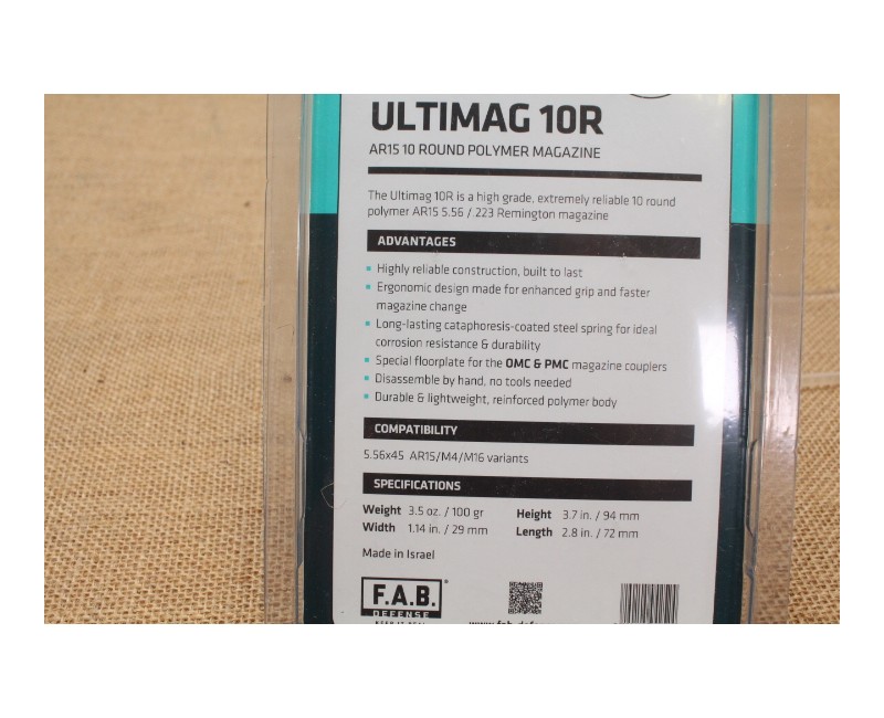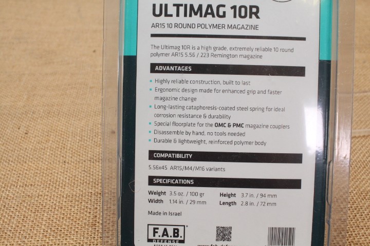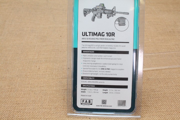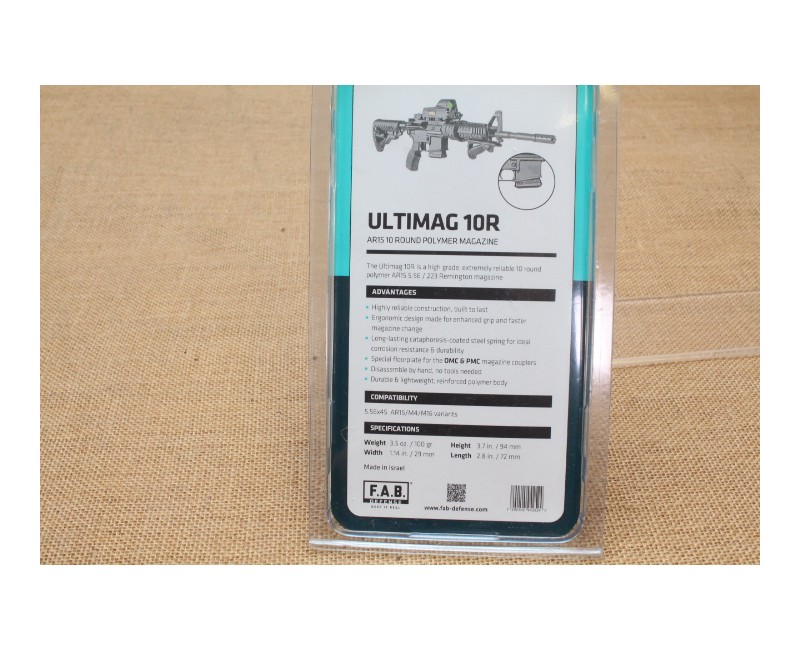 Chargeur FAB DEFENSE Ultimag Cal 223 Rem 10 Coups Noir pour Ar15 et M4
